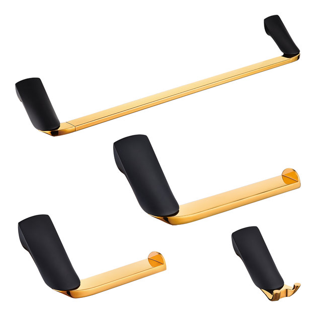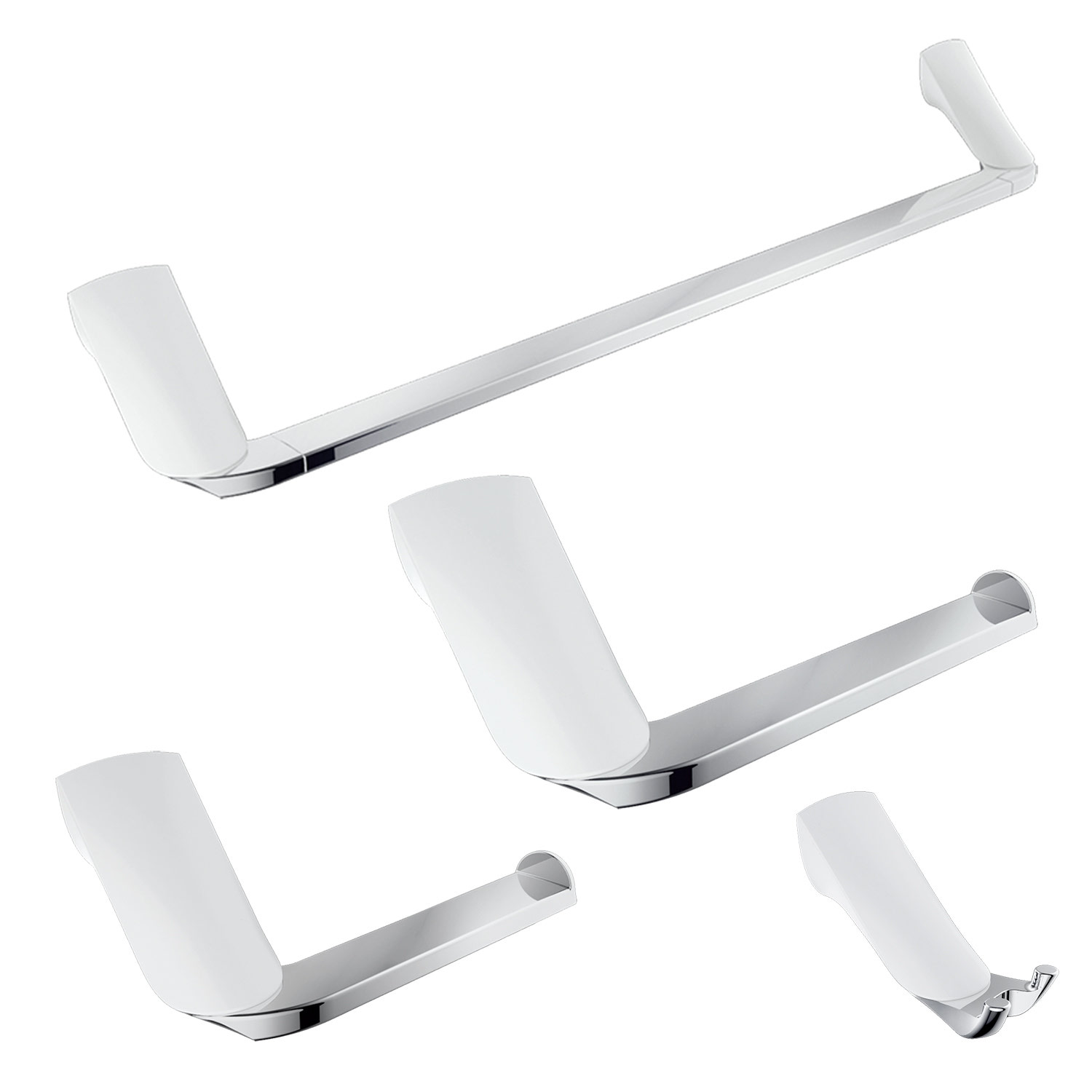 4 Piece Bath Set in Polished Chrome, Black with Gold or White with Chrome