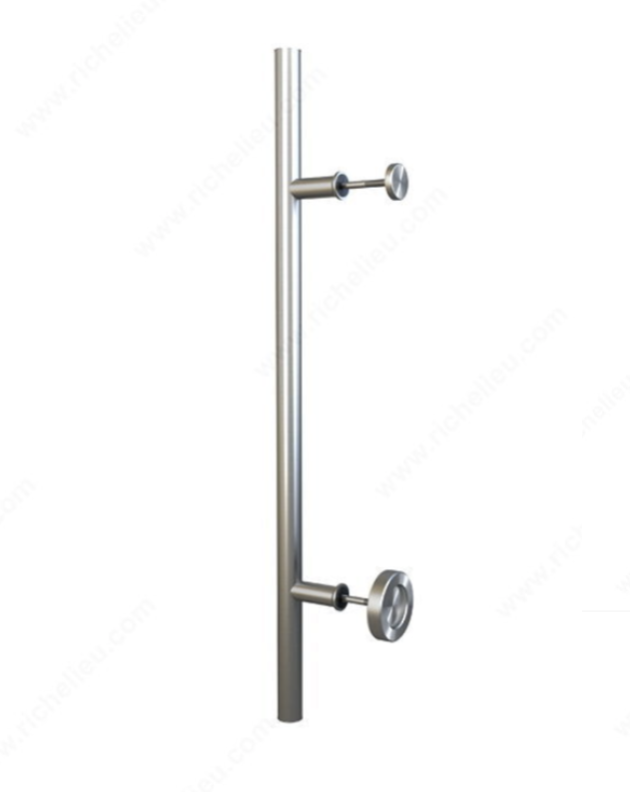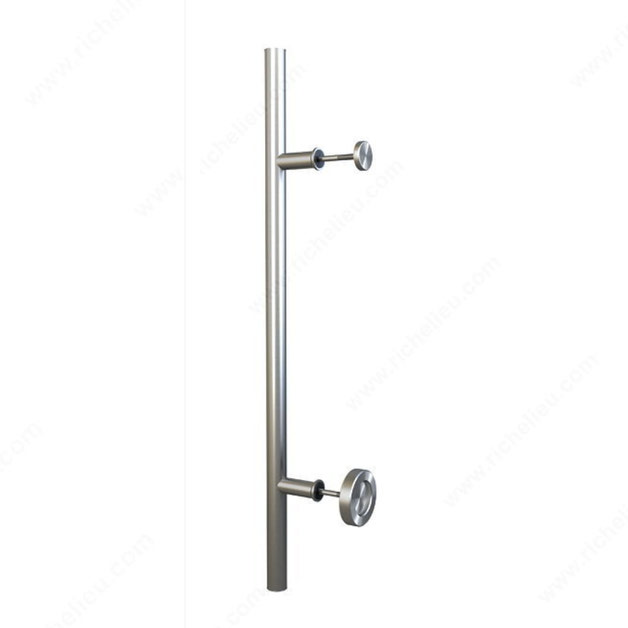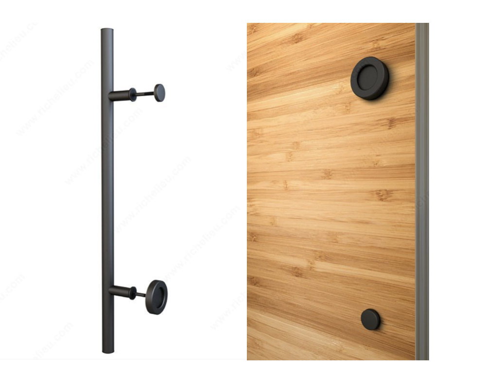 Wall mounted track and hardware Essentials Combined pull and knob: flat bar on one side with a flat disc on the other. Screws for two door thicknesses: 35-45 mm and 45-55 mm
